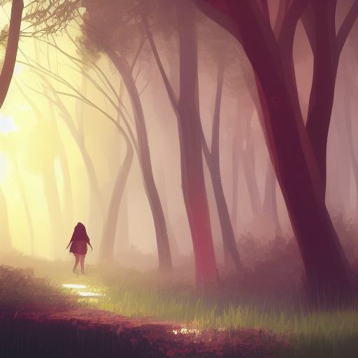 Joyful digital art of a person walking through a forest
