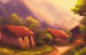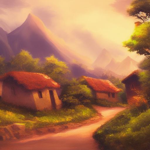 First, the prompt describes a “painting of a small village in the mountains”, which sets the overall scene and composition for the image. This provides context for the type of landscape and architecture that the algorithm should aim to generate.