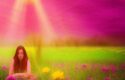 About Psychedelic Art of a woman sitting amidst a field of flowers