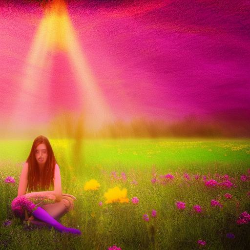 About Psychedelic Art of a woman sitting amidst a field of flowers