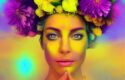 By combining these elements, the prompt guides the AI to generate an image that reflects a powerful, mystical woman adorned with a flower crown, standing in a field of surreal and vibrant flowers. The low angle shot emphasizes her strength, while the color scheme and lighting contribute to the overall dreamy and magical ambiance.