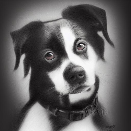 The black and white drawing of the dog