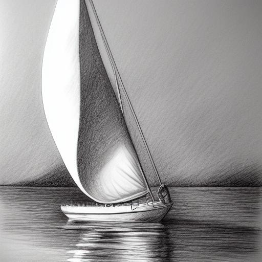 The pencil drawing of a sailboat in the water