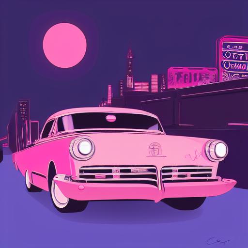 Firstly, the prompt provides a specific subject for the image – a retro pink car driving down a street at night. This gives the AI a clear focus and direction for the image it will generate. The concept art by Craig Thompson is also mentioned, which means that the AI will likely take inspiration from Thompson’s style and technique.