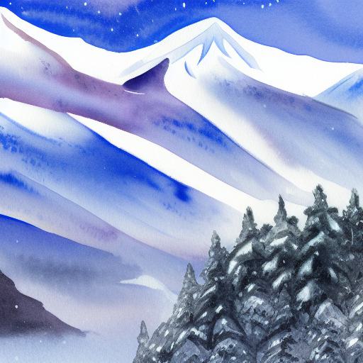 The watercolor painting of a snowy mountain inspired by Charles E. Burchfield