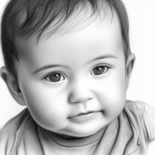 A black and white drawing of a baby boy