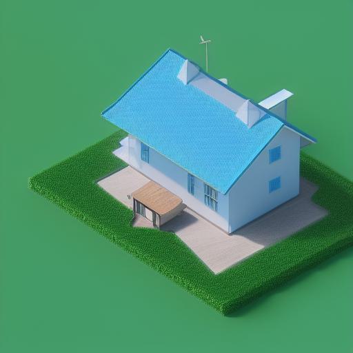 A blue house sitting on top of a green field
