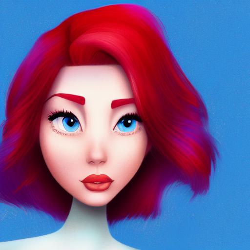 A close up of a woman with red hair and blue eyes