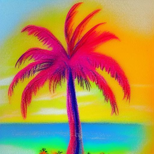 A color painting of the palm tree on a beach