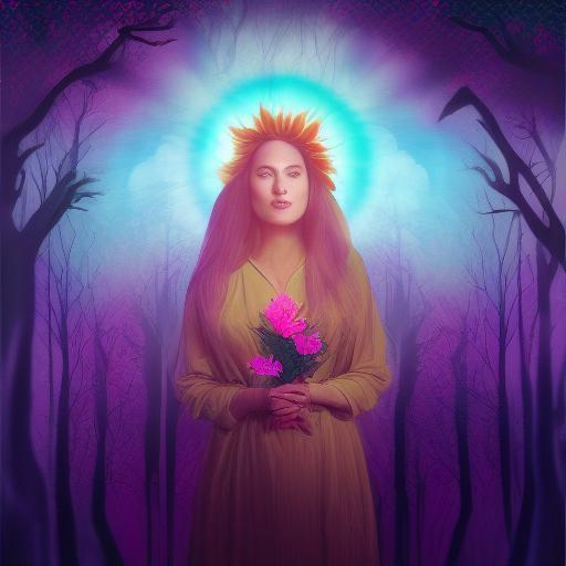 A digital 2D fantasy psychedelic artwork painting of a woman holding a laughing flower