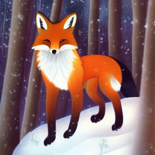 A fox that is sitting in the snow