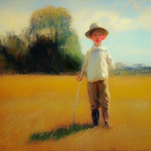 A painting of a boy in a field