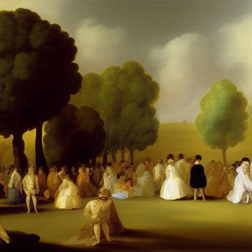 A painting of a group of people in a field with trees by Francisco de Holanda