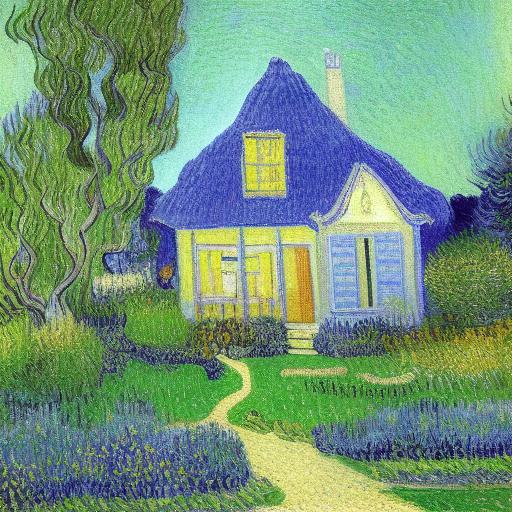 A painting of a house with a garden