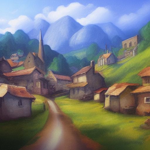 A painting of a small village in the mountains