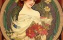 - An art nouveau painting inspired by Alphonse Mucha: This indicates the artistic style and inspiration for the artwork. Art Nouveau is renowned for its elegant, flowing lines, intricate details, and organic motifs. Alphonse Mucha, a prominent figure in the Art Nouveau movement, is known for his distinct style that often features graceful women and botanical elements.