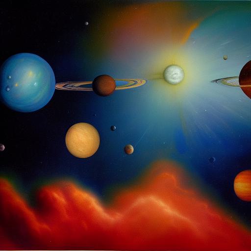 A painting of planets in galaxy space