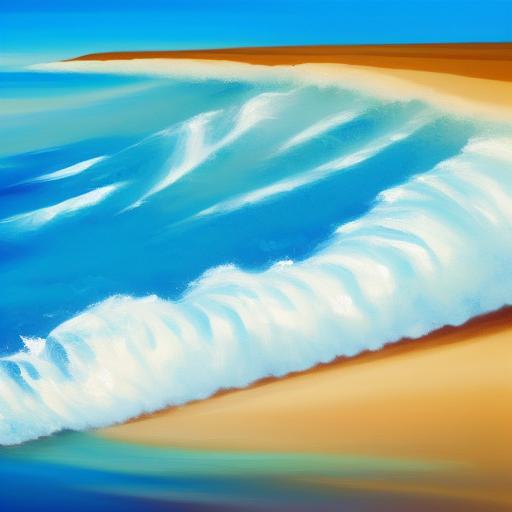 A painting of sea and beach with blue sky