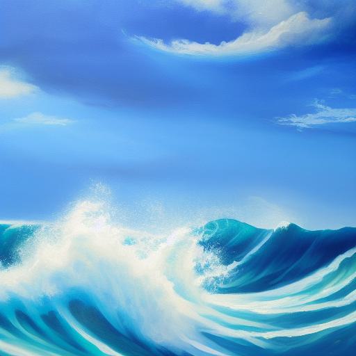The use of oil paint is also significant, as it allows for a smooth and vibrant texture that is characteristic of oil painting. The prompt suggests that the painting should be smooth in texture, which indicates that the waves and sky should be blended together seamlessly, creating a sense of movement and flow.