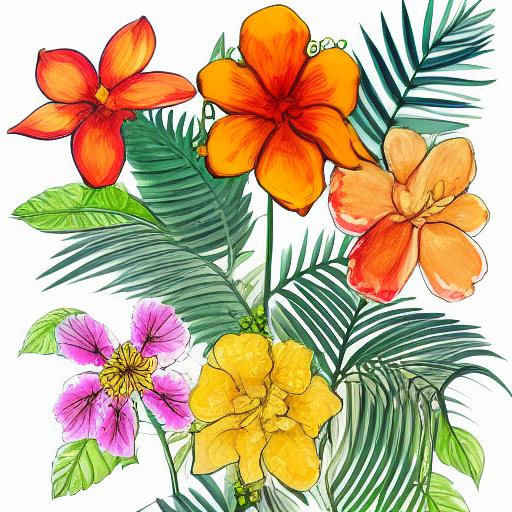 A painting of six flowers on a white background