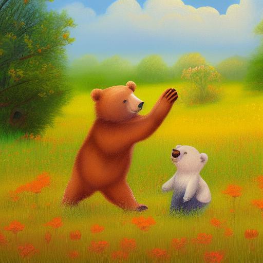 A painting of two bears in flowers field
