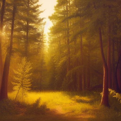 A painting of various trees in a forest