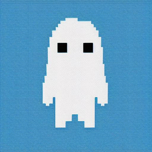 A pixel image of a ghost on a blue background