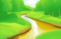 The first part of the prompt describes the main subject of the image, which is “a small river running through a green field”. This sets the scene and gives the AI an idea of what the main focus of the image should be. The use of the word “small” suggests that the river is not very wide, which may influence the scale of the final image. The “green field” provides a backdrop for the river, and may indicate that the AI should include grass or other vegetation in the image.