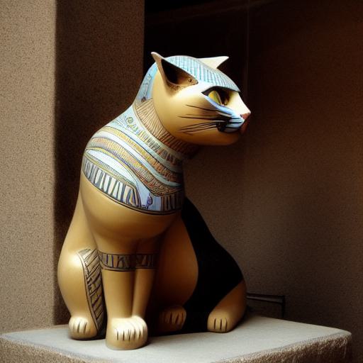 The prompt also references the goddess Bastet, an important deity in ancient Egyptian mythology who was often depicted as a cat or with the head of a cat. This will influence the pose and expression of the cat statue and the depiction of the goddess in the final image.