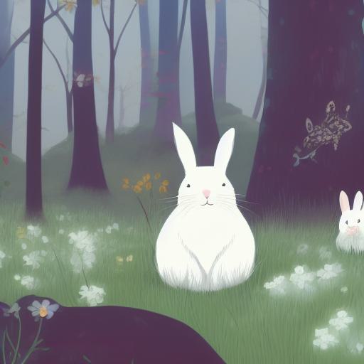 A white rabbit sitting in the middle of a forest