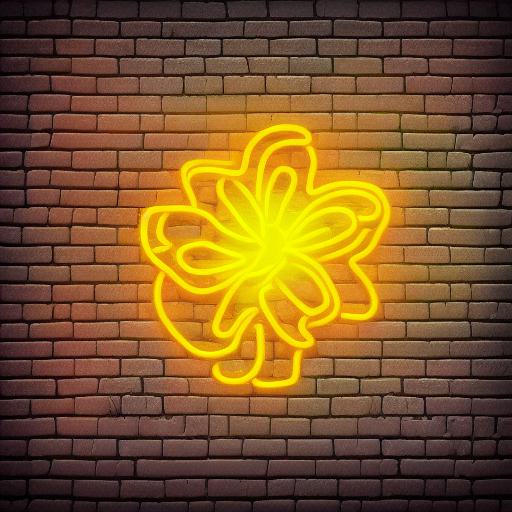 A yellow flower neon sign on a brick wall