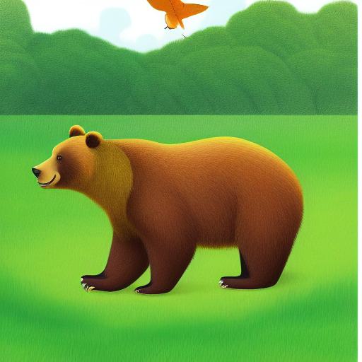Brown bear in the lush green field