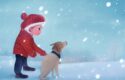 Firstly, the prompt includes a description of the main subjects of the image: a little boy and a dog standing in the snow during winter. This information gives the AI algorithm a clear idea of what the image should depict, including the setting and mood.