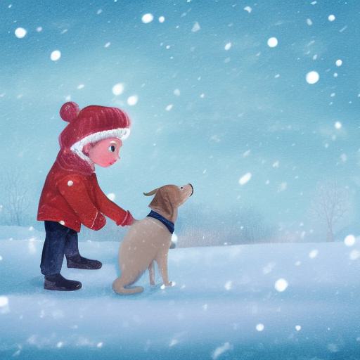 Firstly, the prompt includes a description of the main subjects of the image: a little boy and a dog standing in the snow during winter. This information gives the AI algorithm a clear idea of what the image should depict, including the setting and mood.