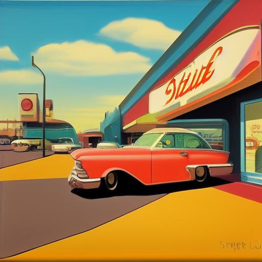 About Painting of a retro car parked in front of a starlite diner
