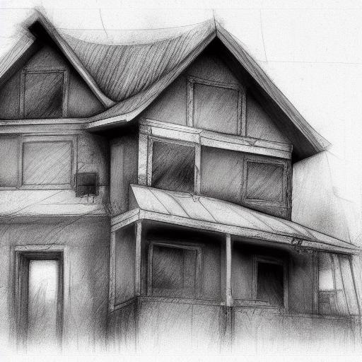 The black and white charcoal drawing of a house