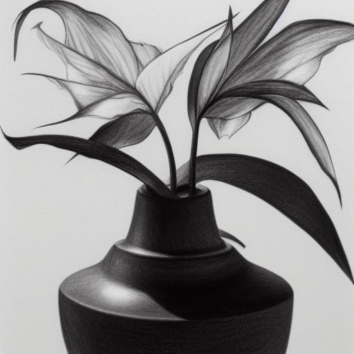 The black and white drawing of a plant in a vase