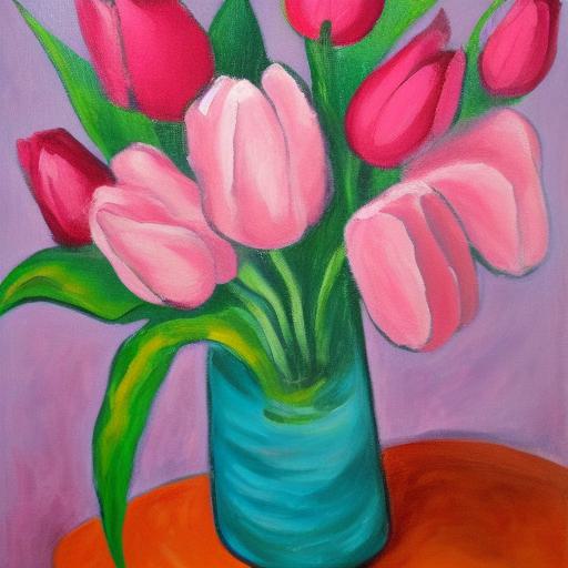 The painting of several pink flowers in a vase