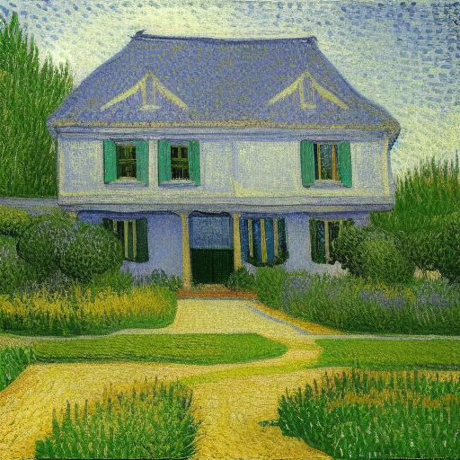 The painting of the house with a garden