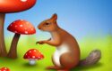 The AI image prompt for “the squirrels near a mushroom” is a good example of how to write a prompt for a storybook illustration. Each individual part of the prompt plays a role in influencing the final image generated by the AI algorithm.