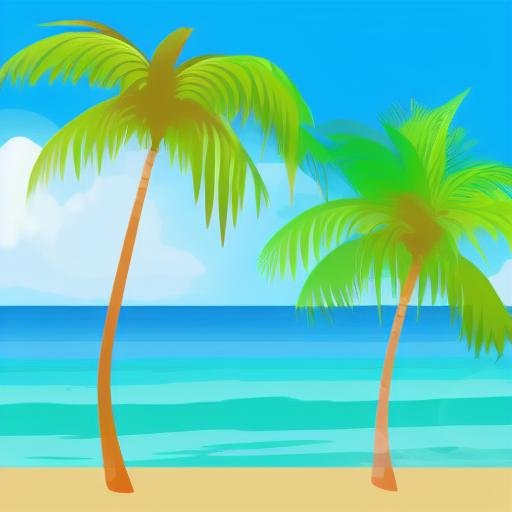 A beach with palm trees and umbrella
