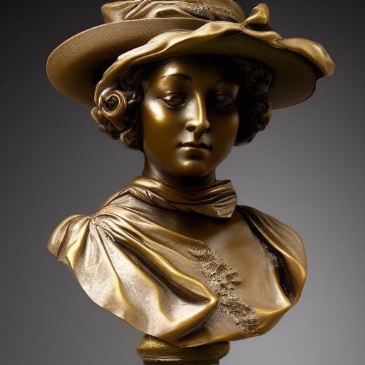 A bronze bust of beautiful woman with a hat