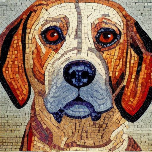 A close up of mosaic of a dog