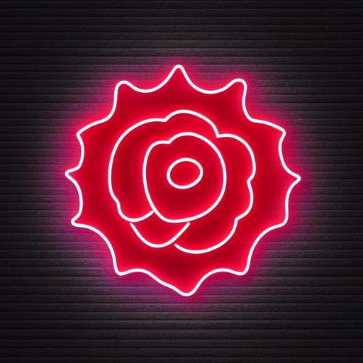 A flower symbol neon sign on a wall