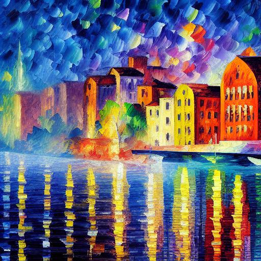 A painting of a city by the water