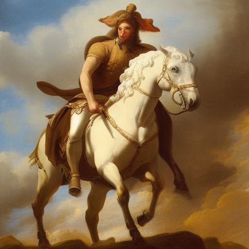 A painting of a man riding on the back of a horse