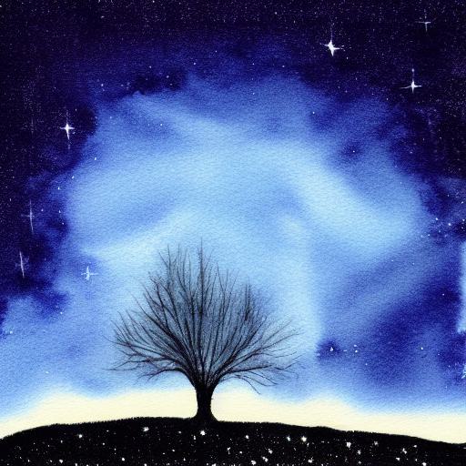 A painting of a tree in the sky at night