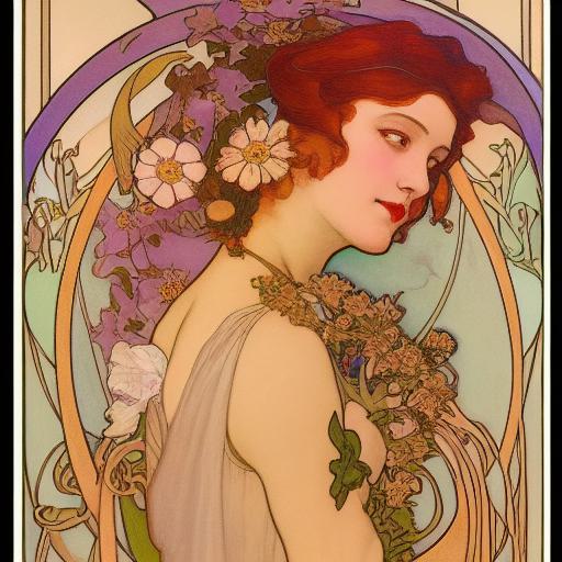 • The prompt mentions Alphons Mucha, Raphaelite, and Alphonse Mucha, likely referencing related artists or artistic influences that contribute to the desired artistic direction.