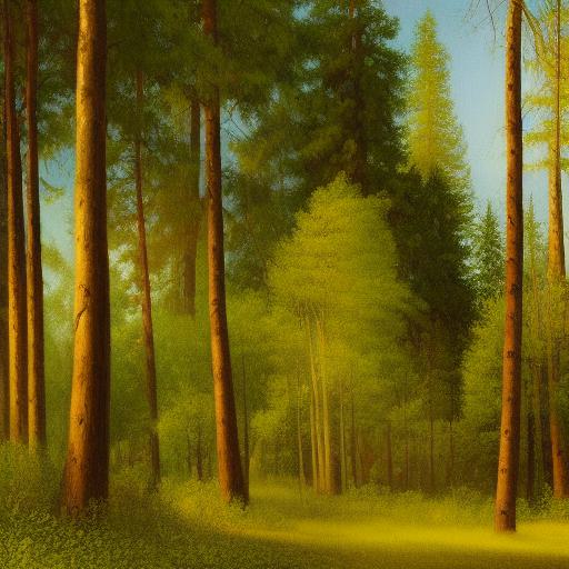 A painting of many trees in a forest