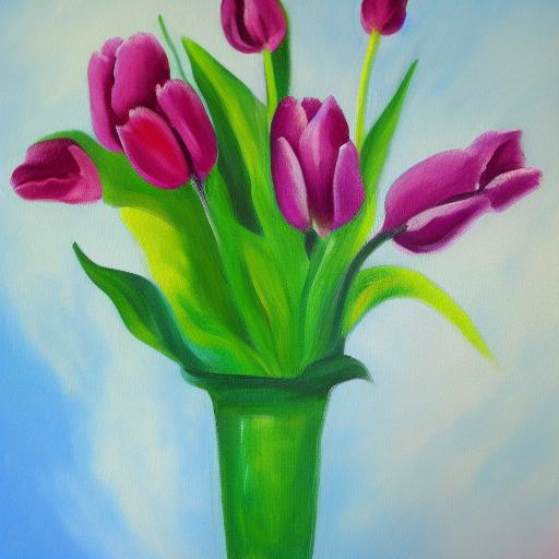 A painting of some pink flowers in a vase